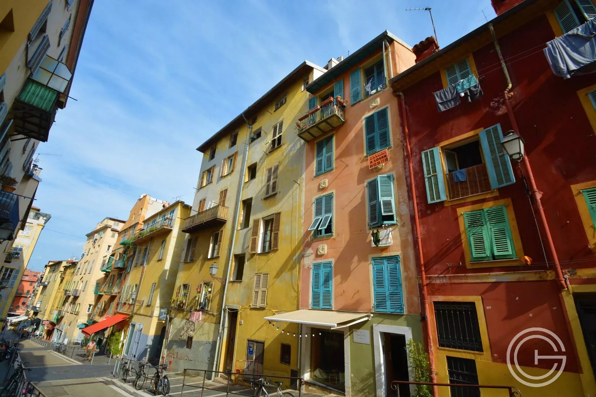 Emplacement idéal en plein cœur du vieux Nice, proximité directs des transports en commun et commerces.