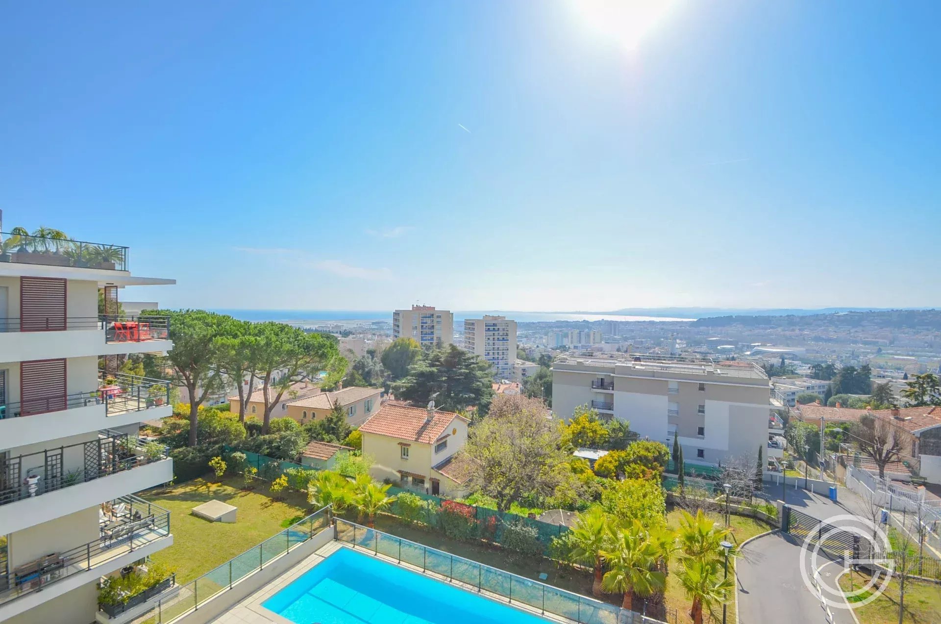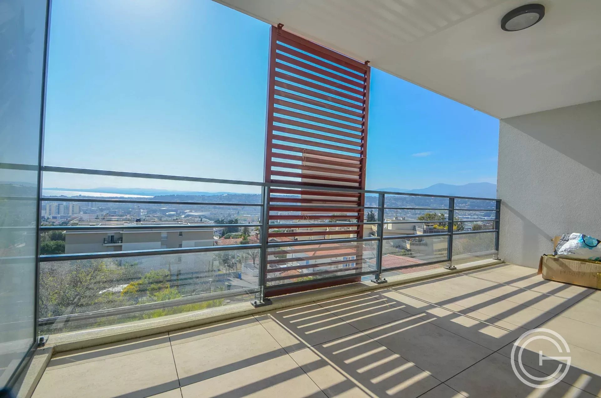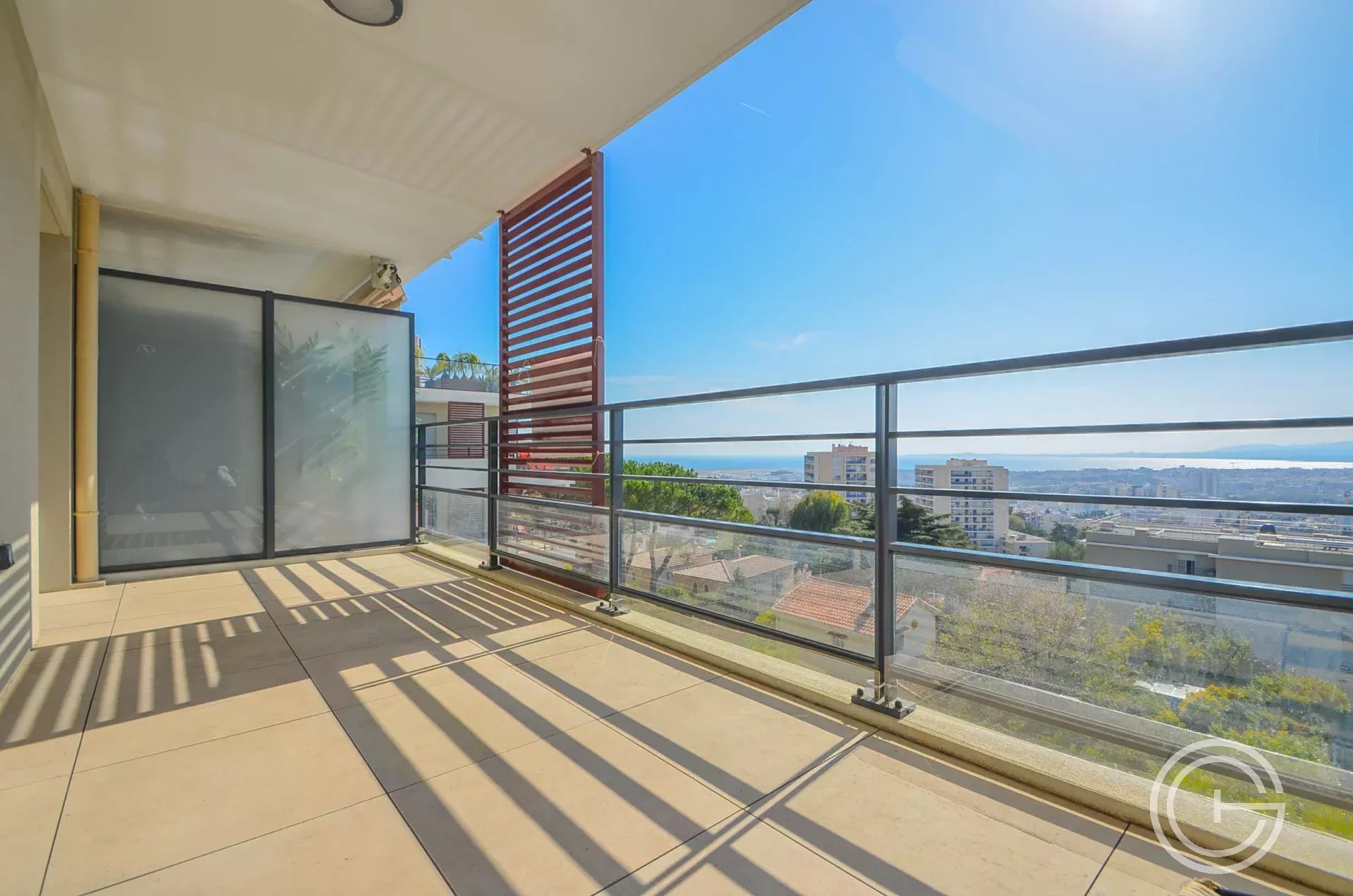 Belle terrasse de 10m² exposé OUEST, vue panoramique mer, bel ensoleillement.