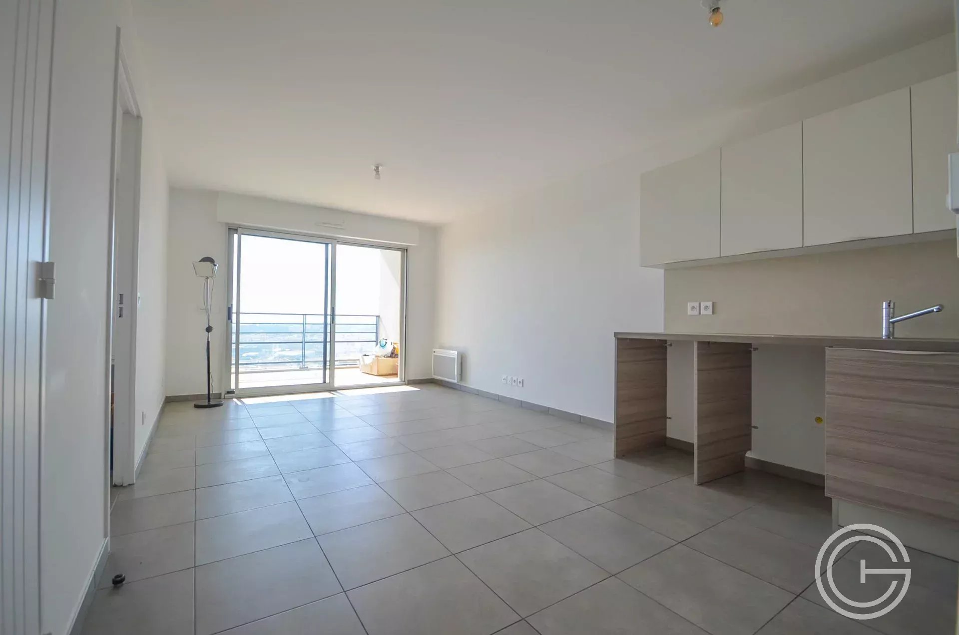 L'appartement se compose d'un séjour avec cuisine aménagée, chambre avec placard, salle d'eau et WC indépendant.