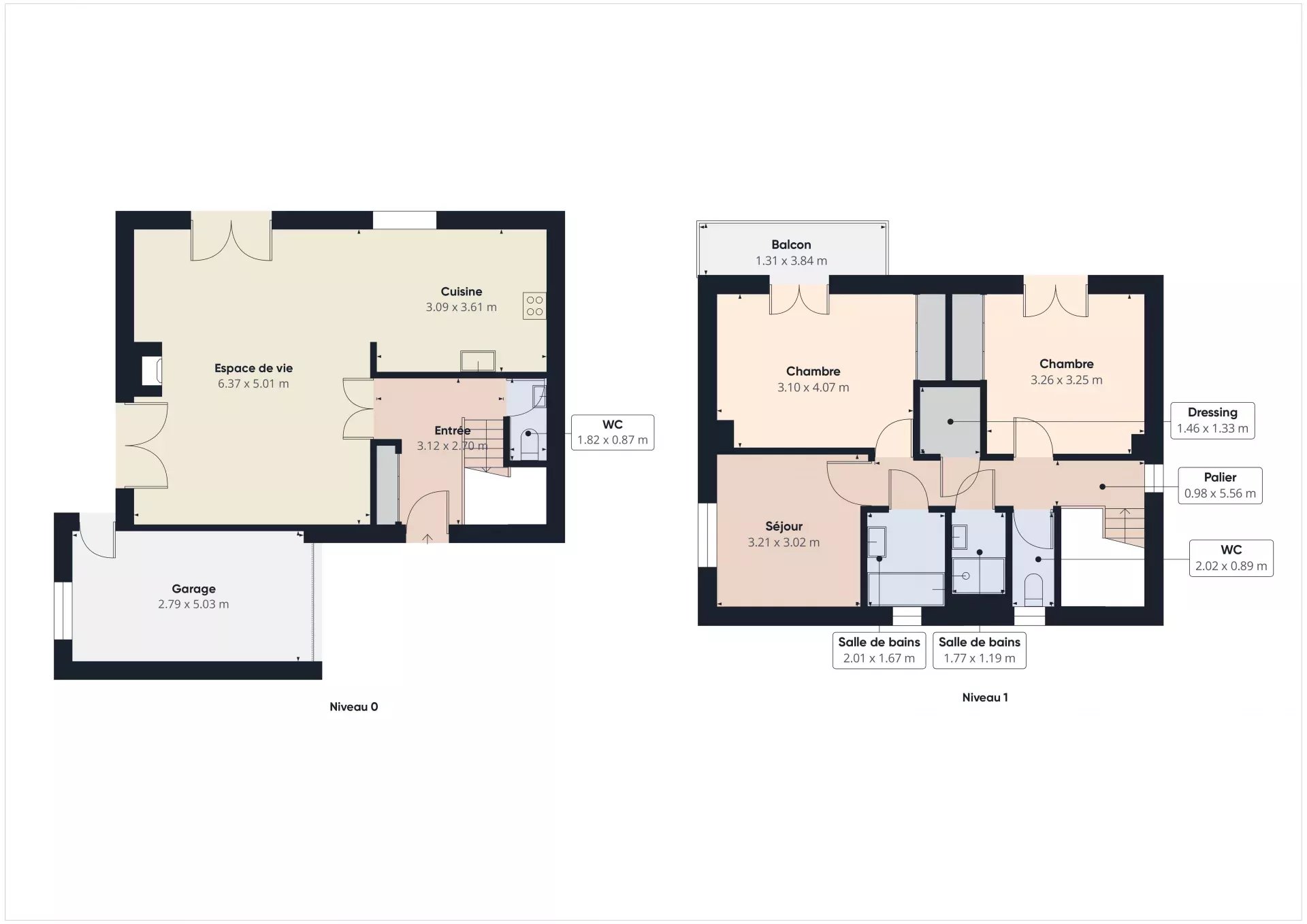 La villa, édifiée sur deux niveaux, se compose comme suit :